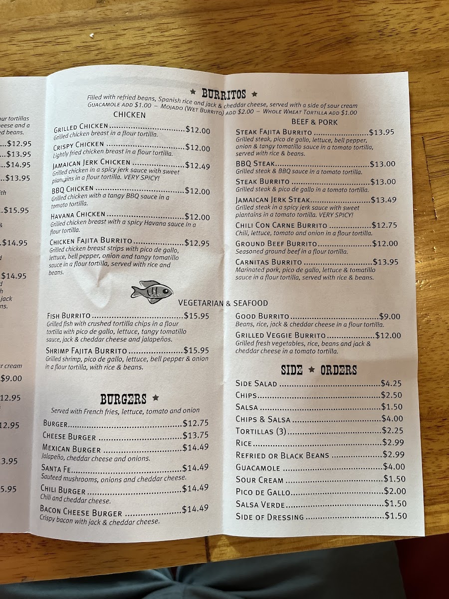 “ Everytime my buddies and I walk in, regardless of server, we feel welcome. The portions are great. We leave full and food is delicious. I usually do the tacos, but did the Jamaican Jerk chicken burrito without plantains (yes, I've had them before), and it was holy cow delicious. The flavor of the meat doesn't require anything else. Great spot. Come back at least once every time in town ”