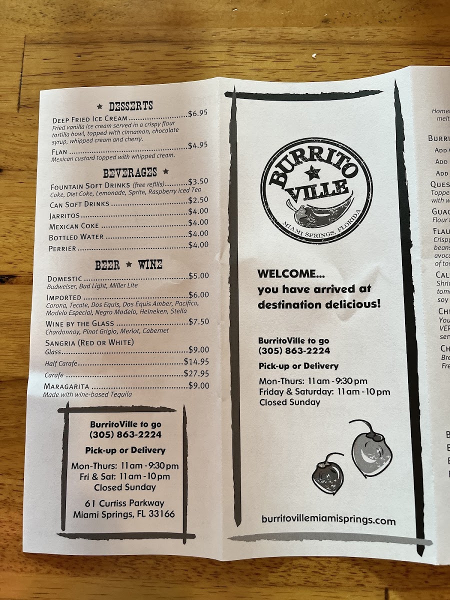 Welcome to Burritoville, a culinary gem nestled in the heart of Miami Springs, Florida, at 61 Curtiss Pkwy. This vibrant eatery proudly serves a delightful array of Tex-Mex dishes that cater to every palate. From the moment you step inside, you are greeted by an eclectic atmosphere that invites you to unwind and savor the flavors of their expertly crafted menu.